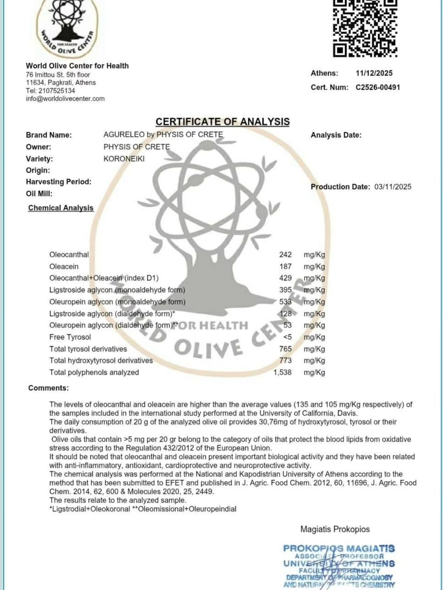 AGOURELEO is an extra virgin olive oil made from unripe green olives.