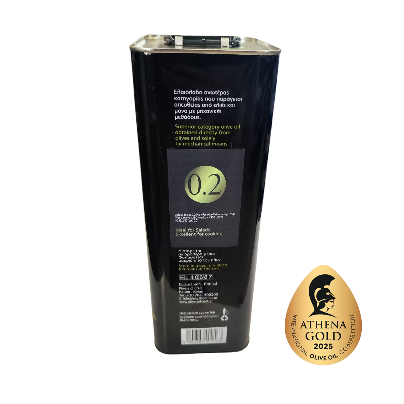 Extra virgin olive oil from Crete with 0.2% acidity produced by cold pressing immediately after harvesting from olives of the Koroneiki variety. It is produced in an area in southern Crete in Lasithi with a family tradition of olive oil production. It is the best choice for salads, cooking and cold cuisine. Try to taste its excellent taste just on a baguette or pastry.