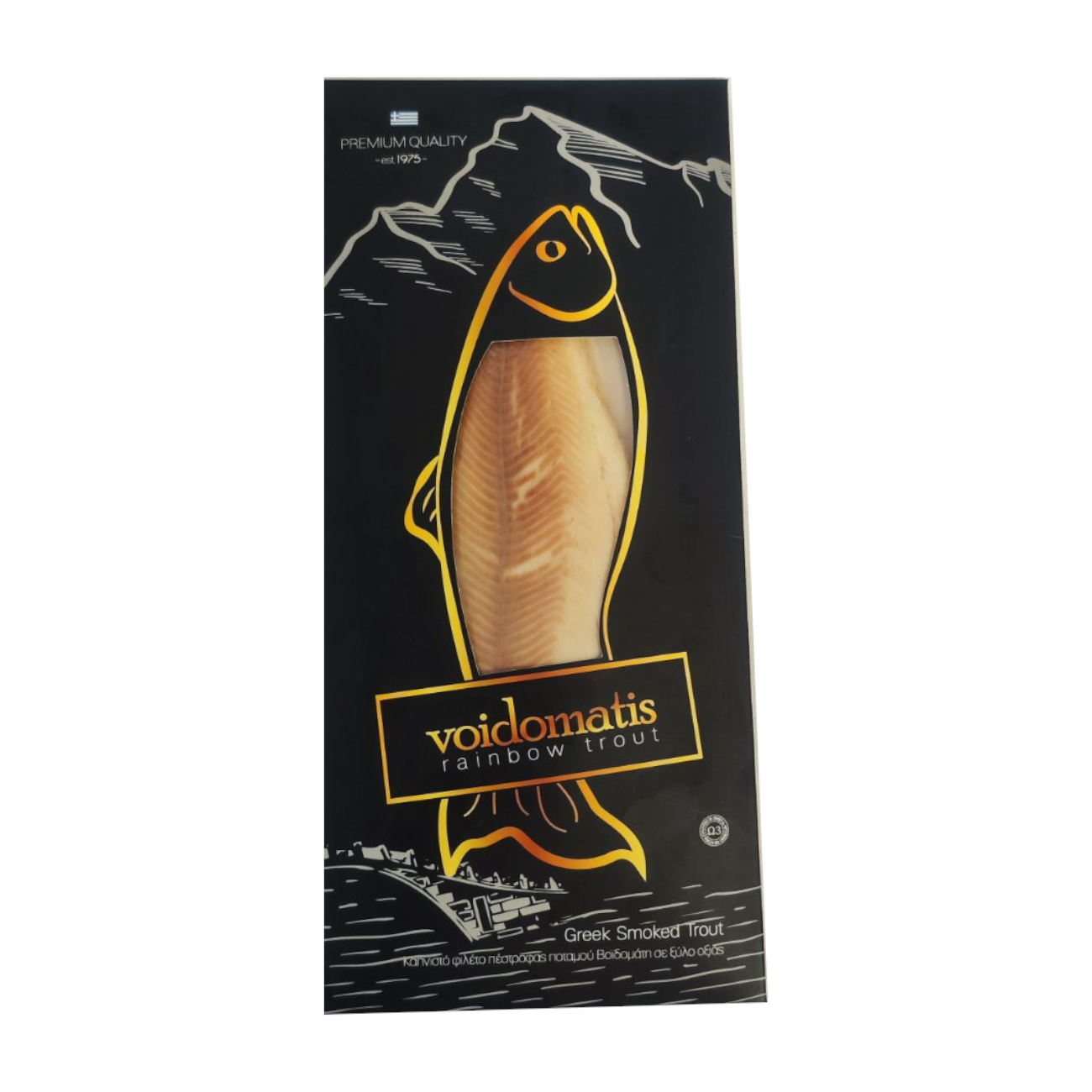 Výrobok z tepelne údeného pstruha. Chované v sladkej vode rieky Voidomatis.
