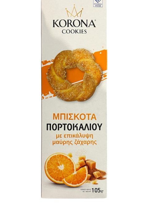 Sušienky Korona s pomarančom, potiahnuté hnedým cukrom. Sladká a svieža chuť pomaranča sa snúbi s bohatým obalom hnedého cukru a vytvára jedinečnú kombináciu chutí, vďaka ktorej si ho okamžite zamilujete.